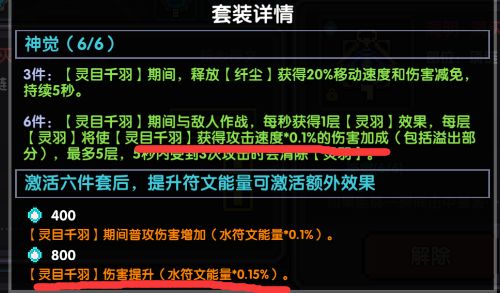 荆棘的四星效果提升100攻速,是真的非常强,让你可以很容易的单人达成4攻速,而且灵目游侠的6件套效果对溢出攻速也就加成,导致吃辅助就算满攻速也有不错的提升
