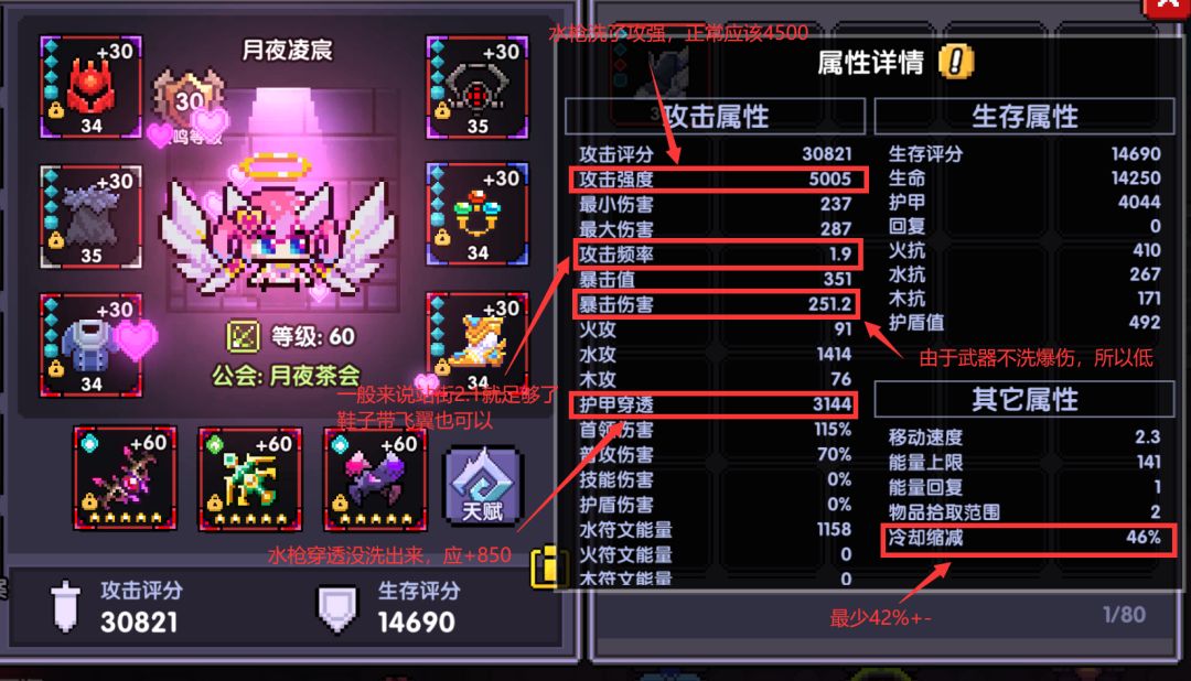 PS:水枪穿透没洗出来,减少390攻强换850穿透即可(没开公会buff)