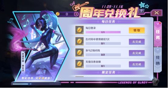 活动期间,完成任务或者充值购买,可获得兑换货币。使用货币可以在兑换商店限时兑换包括穆桂英皮肤在内的多种精美道具。