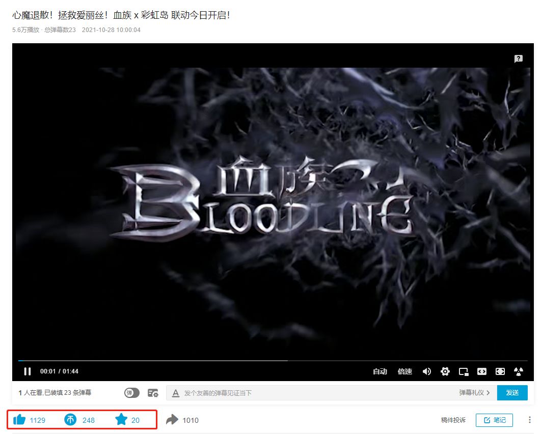 4、一键三连的作品不限投稿时间和类型,只要是您喜欢的血族相关视频,尽情三连它!