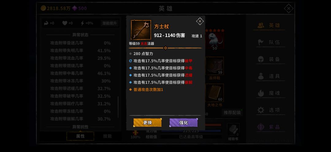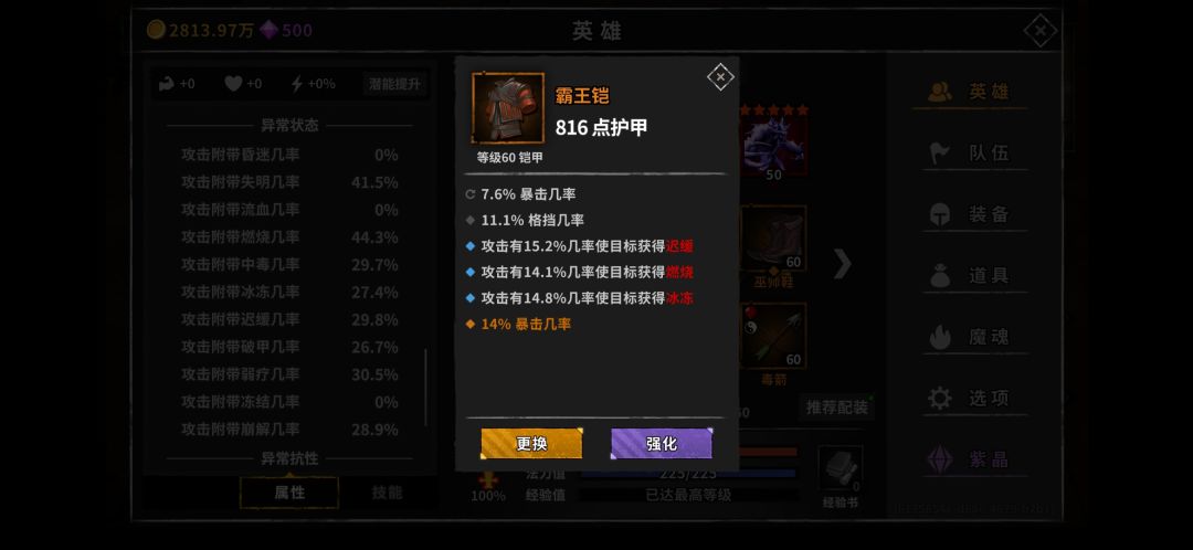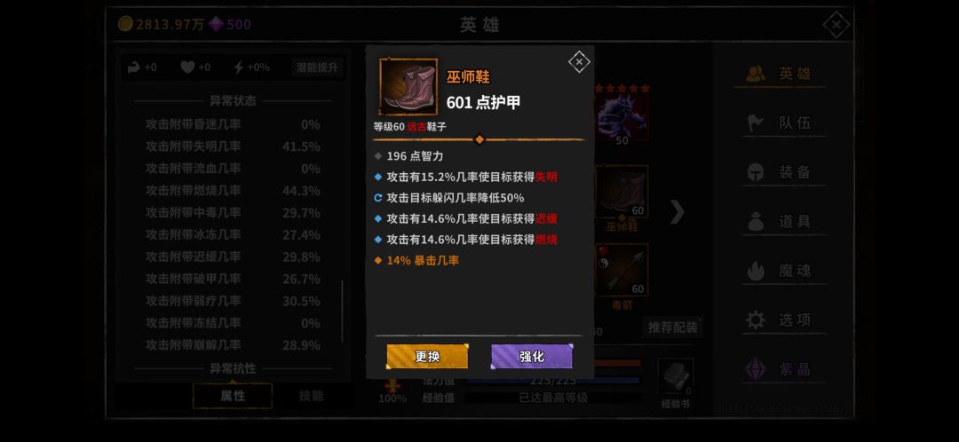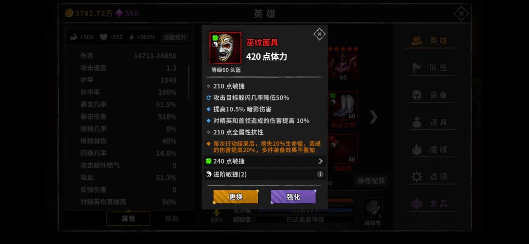 橙色大词条照抄,尽量堆到90暴击率,必须要有8攻击回怒,攻击回怒没法洗出来,挑初始带的装备,头盔衣服鞋子盾牌最好要有2防反弹+3减魅惑+2防闪
