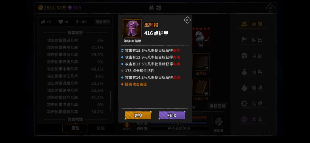 装备词条和橙色大词条都打攻速,拉满攻速2.8