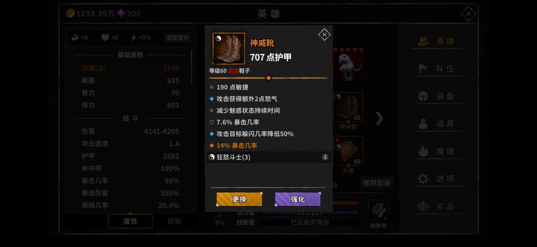 答:主手副手橙色大词条暴击回怒5别忘了,魔魂要杂3个有伤害的攻击魂,大招后面接普攻,还不行就要凑3件狂怒斗士,不稳定就要2防闪词条