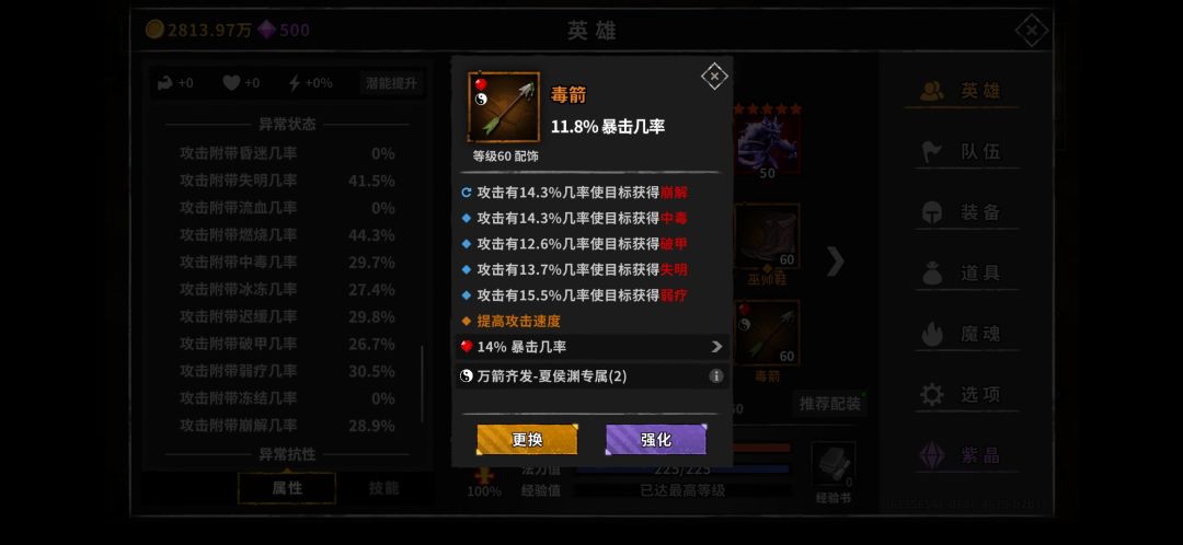 刚刚准备101-120拿箱子的小伙伴肯定是凑不齐打条+异常夏侯渊的,所以可以尝试开头我说的几种阵容,先做好打条夏侯渊,只要纯树魔魂和2件专属2条防闪,凑够90-100暴击率就行了。