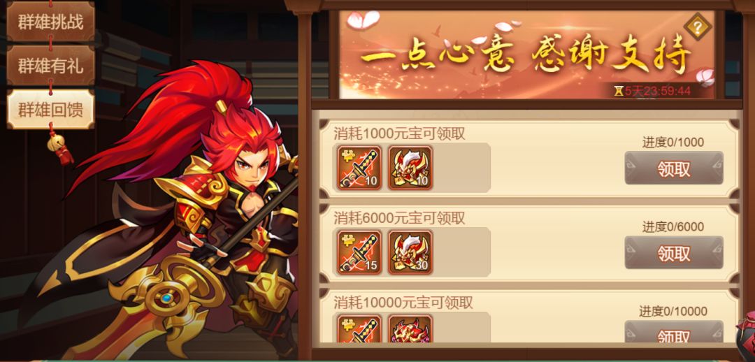 ▌群雄回馈消耗一定的元宝即可获得奖励。