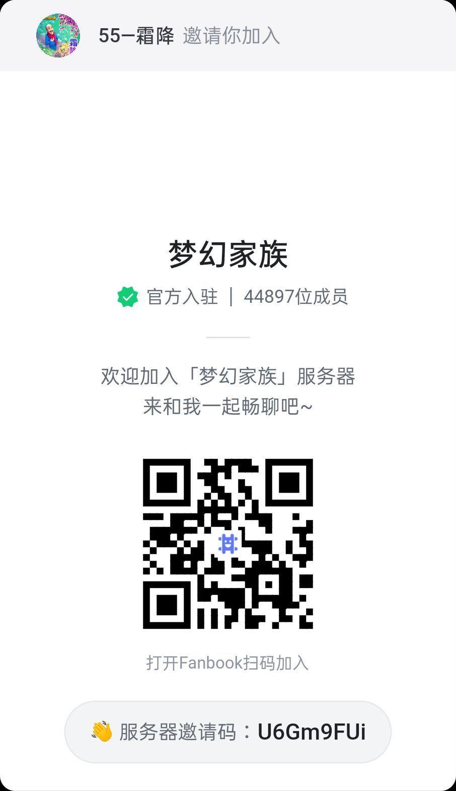 我正在「梦幻家族」服务器中聊天,来和我一起畅聊吧 ~ 点击加入:https://fanbook.mobi/U6Gm9FUi