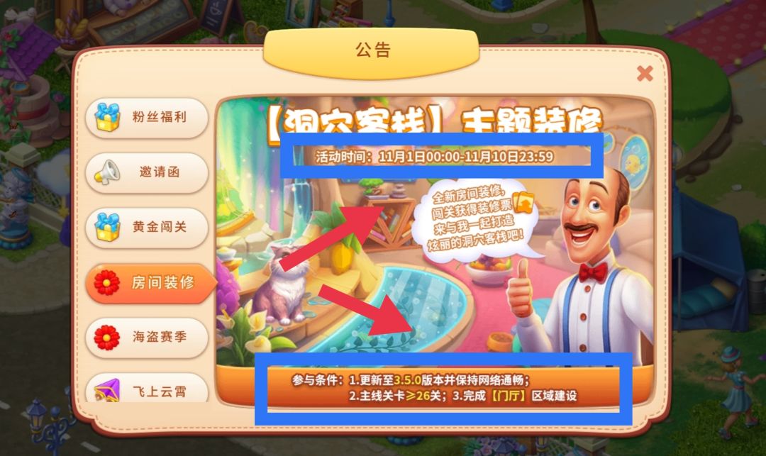 ⏩参与条件:更新至3.5.0版本并保持网络畅通;主线关卡≥26关;完成【门厅】区域建设。