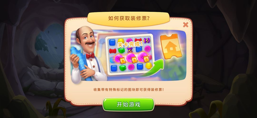 如👆图,收集带有黄色装修票的元素,即可收集装修票。
