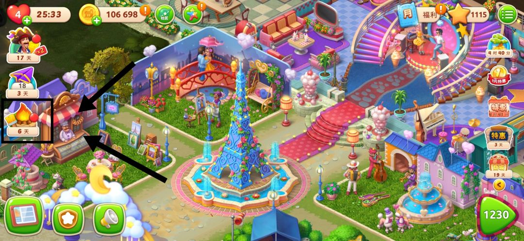 如果没有完成喷泉装修,就无法开启。在闯关的过程中一定不要忘记装修。