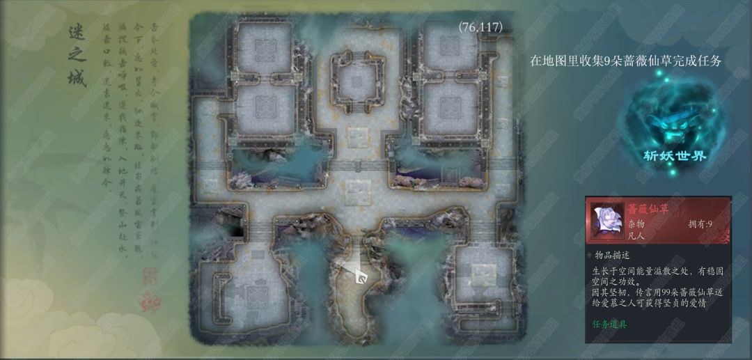 迷之城在地图里收集9朵蔷薇仙草完成任务