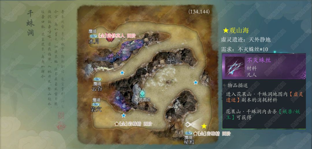 花果山·千蛛洞蛊修真人,岩蛛精五彩石产出,可以提升炼妖葫