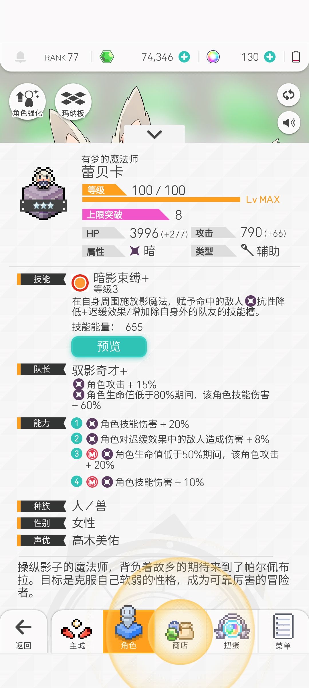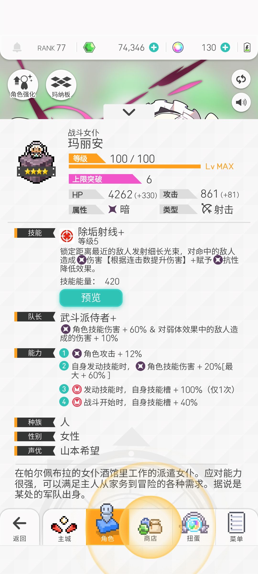 补充三:活动送的角色丽人,可以在没有小兔子的情况下代替小兔子,不过属于负提升(伤害有所降低,会打乱轴等缺点。