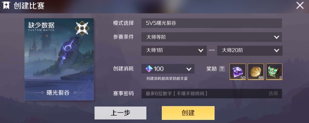 在之后的版本里,我们允许玩家使用钥匙自己创建一个赛事。