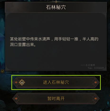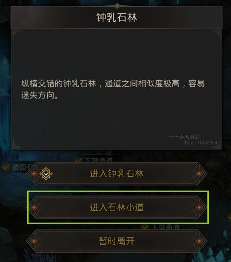 他会让我们找一个脊骨,让我们到【钟乳石林】里面探寻,我们到【石林小道】处