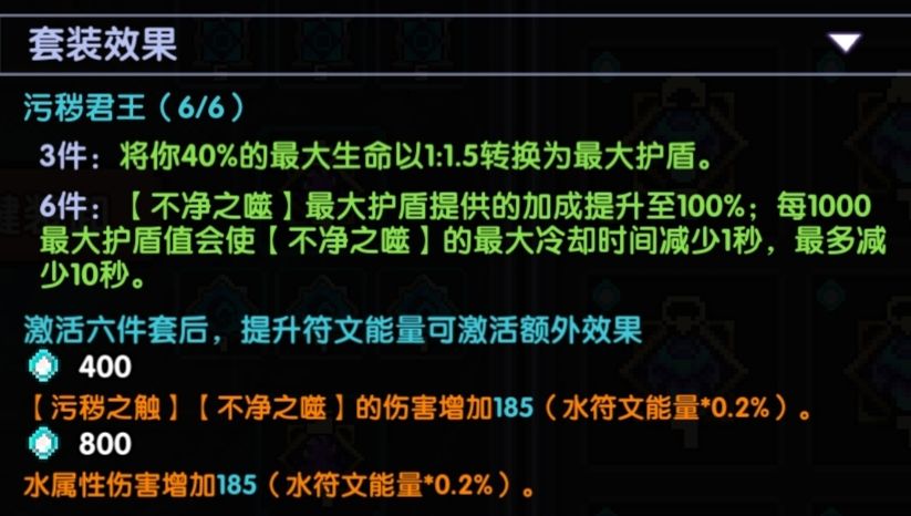 核心技能[不净之噬]需要10000(一万)护盾值,才能达到满冷却,而不丢失伤害。