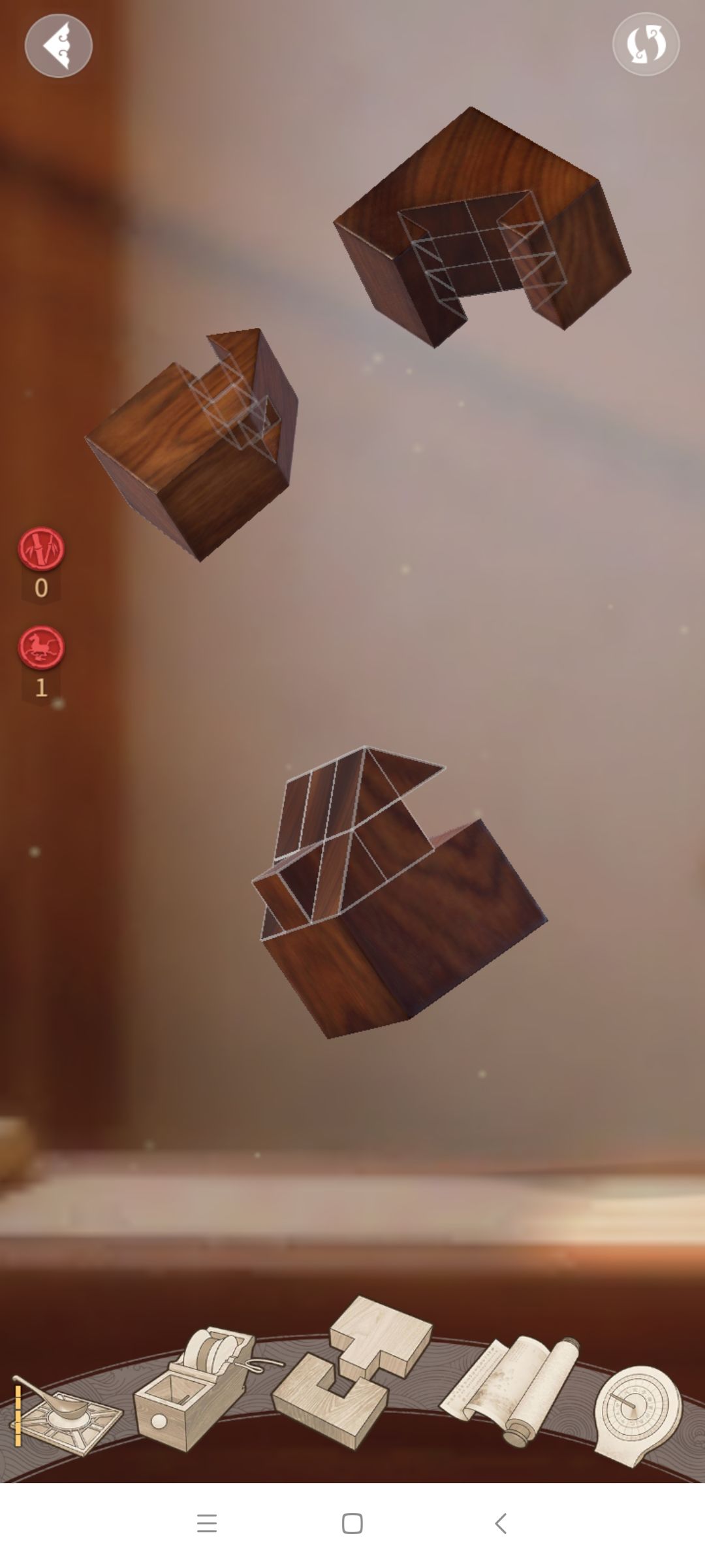 根据图一可以看到我做出来的构件是完全符合要求的,一个嵌入块,拼合燕尾榫。但图23可以看到拼的时候程序非要反过来,然后拼不上。我尝试过从4个方向做,结果都一样。这关多给了一层的自由度,不碰最下面一层就不会出这个bug