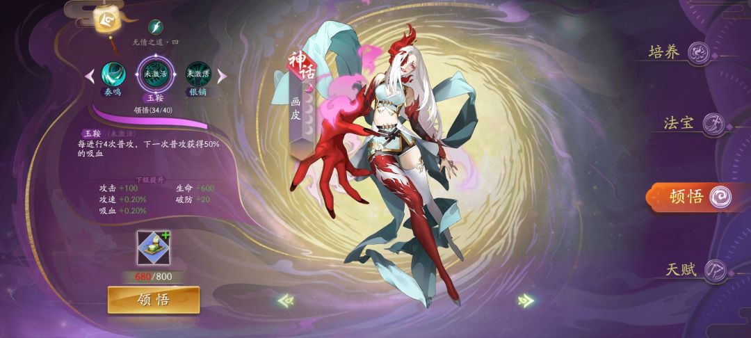 顿悟就是技能的进一步提升,每个灵异在顿悟里有九个小技能。