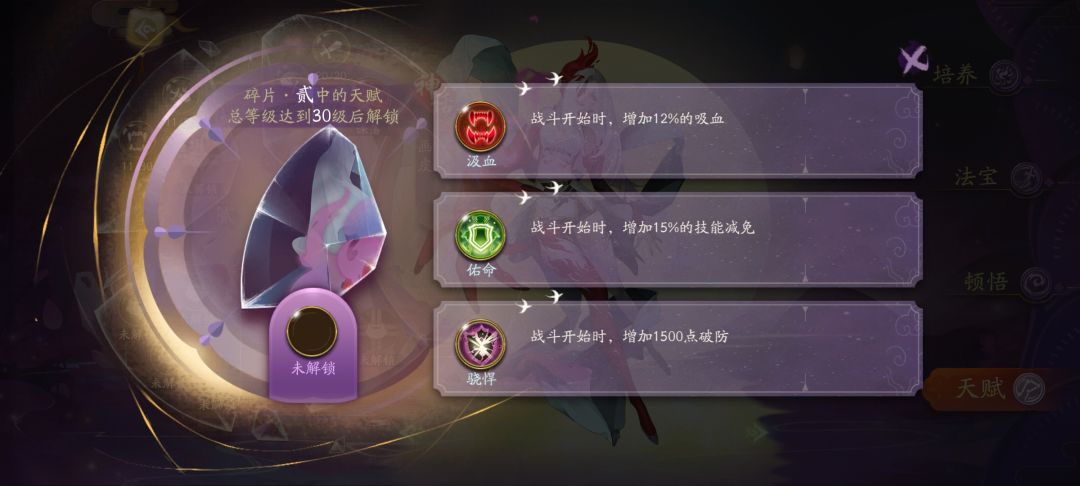 天赋提升需要用到碎灵砂,在[禁地→试炼]中获得,每天重置一次,除了boss其他战斗都可以跳过。