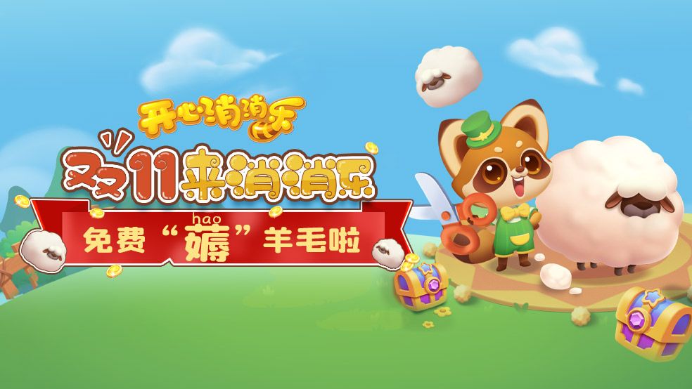 当累计完成5个任务时,小浣熊将获得金剪刀,一口气获得超多羊毛!