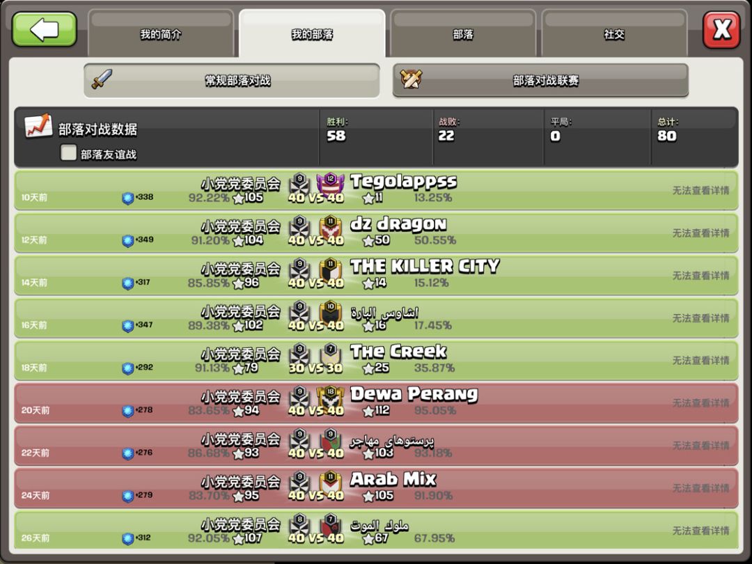 本人皇室战争部落冲突都经营着超高活跃度部落,实力强劲