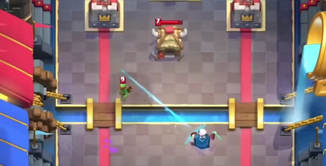 不过,在当时游侠这张卡牌还有个小bug,在当时他在桥头是可以激活到国王塔的!虽然这种激活国王的方式难度非常高,只有很少的高玩才能做到,但是这仍然是一个不小的bug!修复一个又来一个,仿佛就像水里按葫芦,再加上当时火球毒药的横行,游侠完全没有生存空间,并不被玩家很看好!