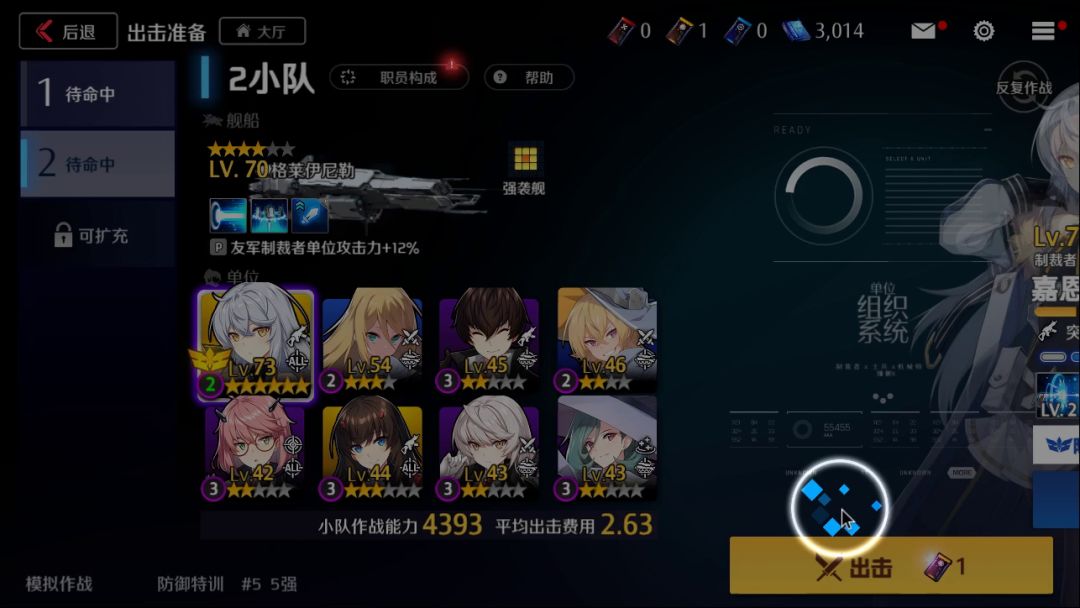 本让收益最大化,三星以后回头再补上,出战队伍的时候别忘了最左上有个支援小队照着牛逼的队选就