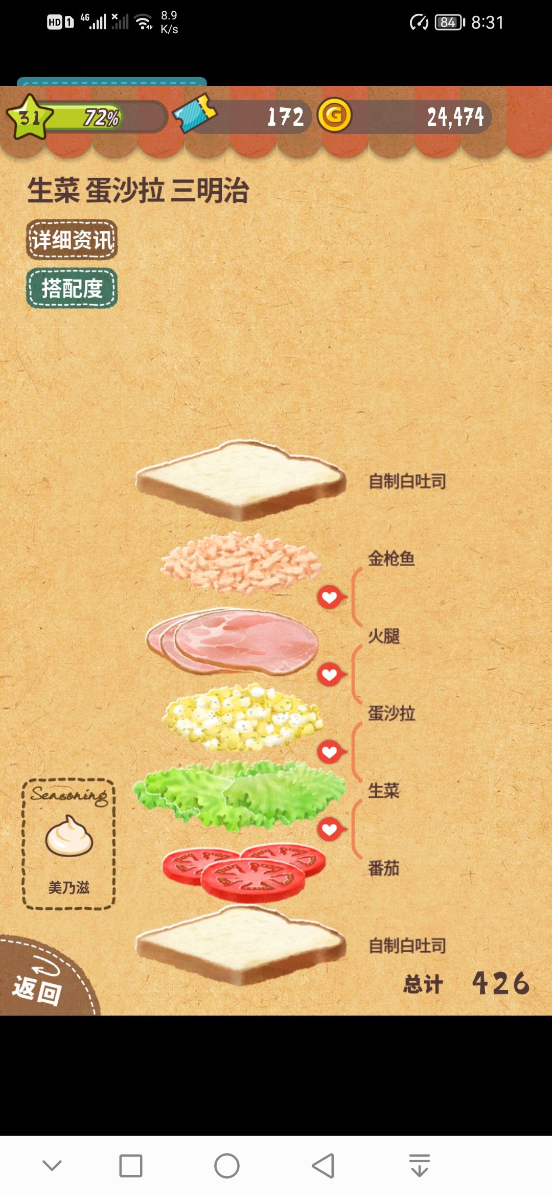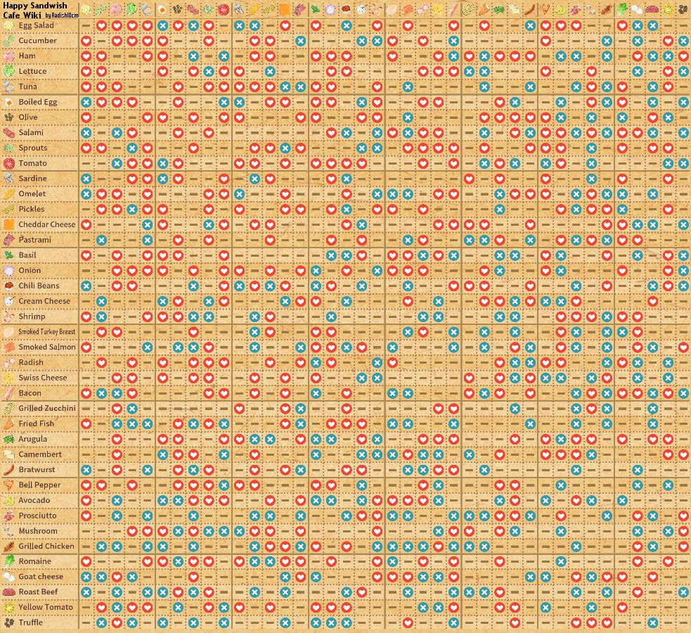把两个红心的食材贴在一起,就可以得到搭配分数