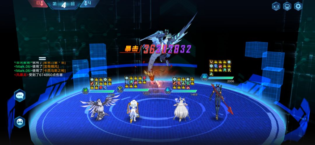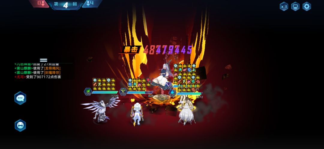 打法和上面一样,第四回合三辅助均是开属性技能,第三回合三个辅助,夜兰和圣灵开大招,小鹿三技能(注意是三技能)