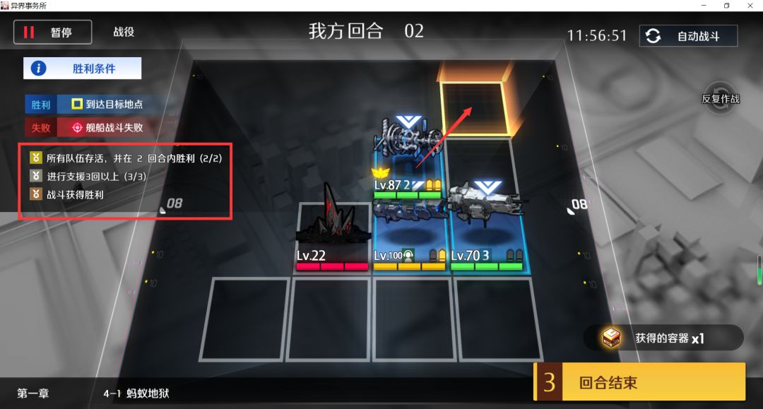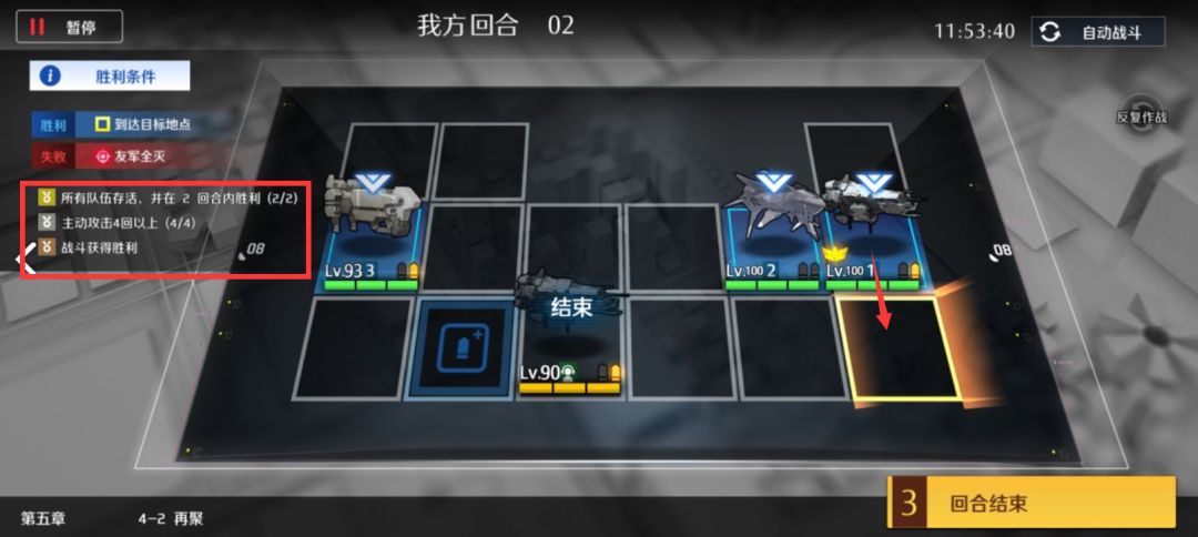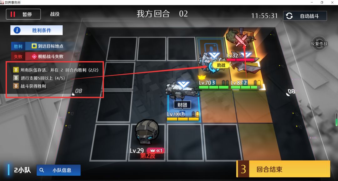 第二回合支援队从左往右依次交换重装特种强袭,一直换到最右边,然后右下吃主动怪