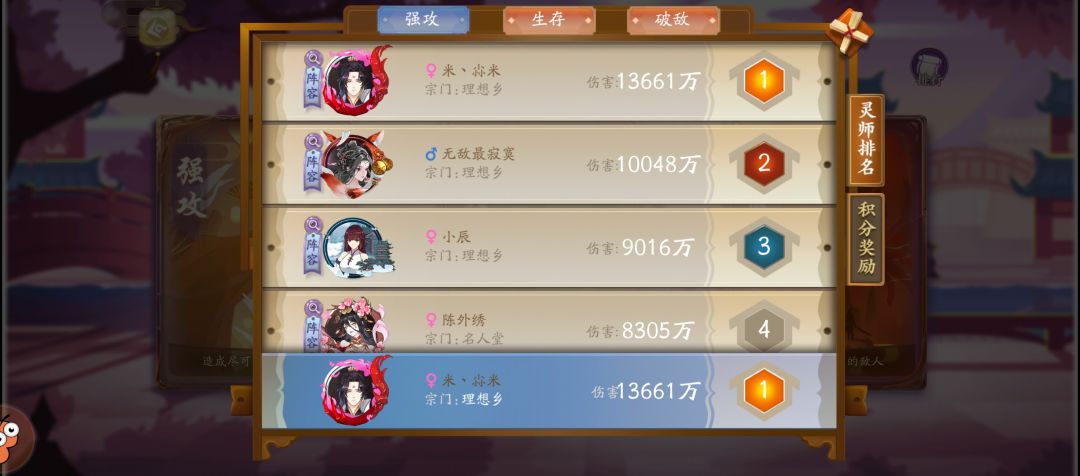 4,山主,老实说这张卡我不太明白为啥输出这么高。但是数值不会说谎,在我没有培养且月亮数不多的情况,多目标战斗能打出相当可观的伤害,就足以证明他当c的潜力。至于潜力有多大,主c是山主的大佬可以说说,强大的功能性还有不俗的输出,在主c的选择这卡还是有一席之地的。但是这货的缺点也很明显,主要有2,单目标拉跨,第二也是重点,为啥拜访没有山主?(我瞎?)