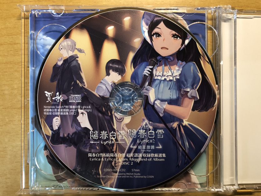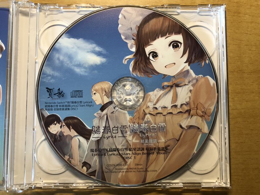 首先是《阳春白雪》的第一套官方音乐CD。CD一共有两张,第一张收录14首歌,总时长59分钟;第二张收录15首歌,总时长57分钟。里面的歌曲全部都是完整版,不是游戏中截取的短版。