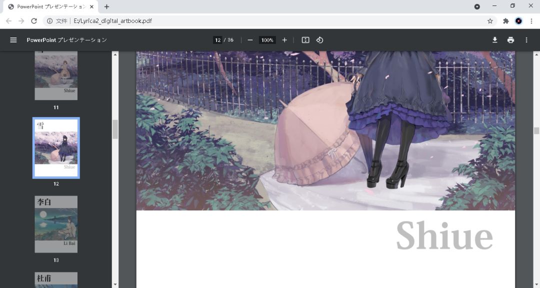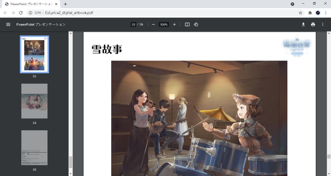 下载得到的数字版设定集是pdf格式,里面收录了《阳春白雪》ns版的大量原画,用ps打开可以提取出高分辨率的大图,总体还是相当不错的。