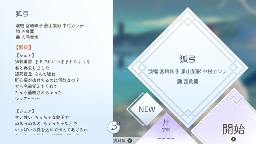 《阳春1》的预设曲中有一首长达四分钟的卅级日语歌《狐弓》,为ns版发行商贾船开发的另一款游戏《狐狸在等我》的主题曲。此歌曲为ns版独占,以目前的信息来看将不会上架移动端。此外《阳春2》中也有小部分移动端暂未上线的歌曲,但应该不久之后就会上线,不用过于担心。