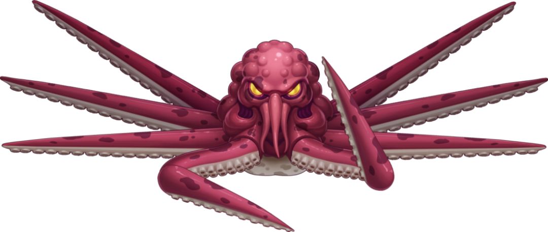 潜伏在深海中的大章鱼怪,具有八根强壮的触手,会抓经过身边的任何动物来吃。