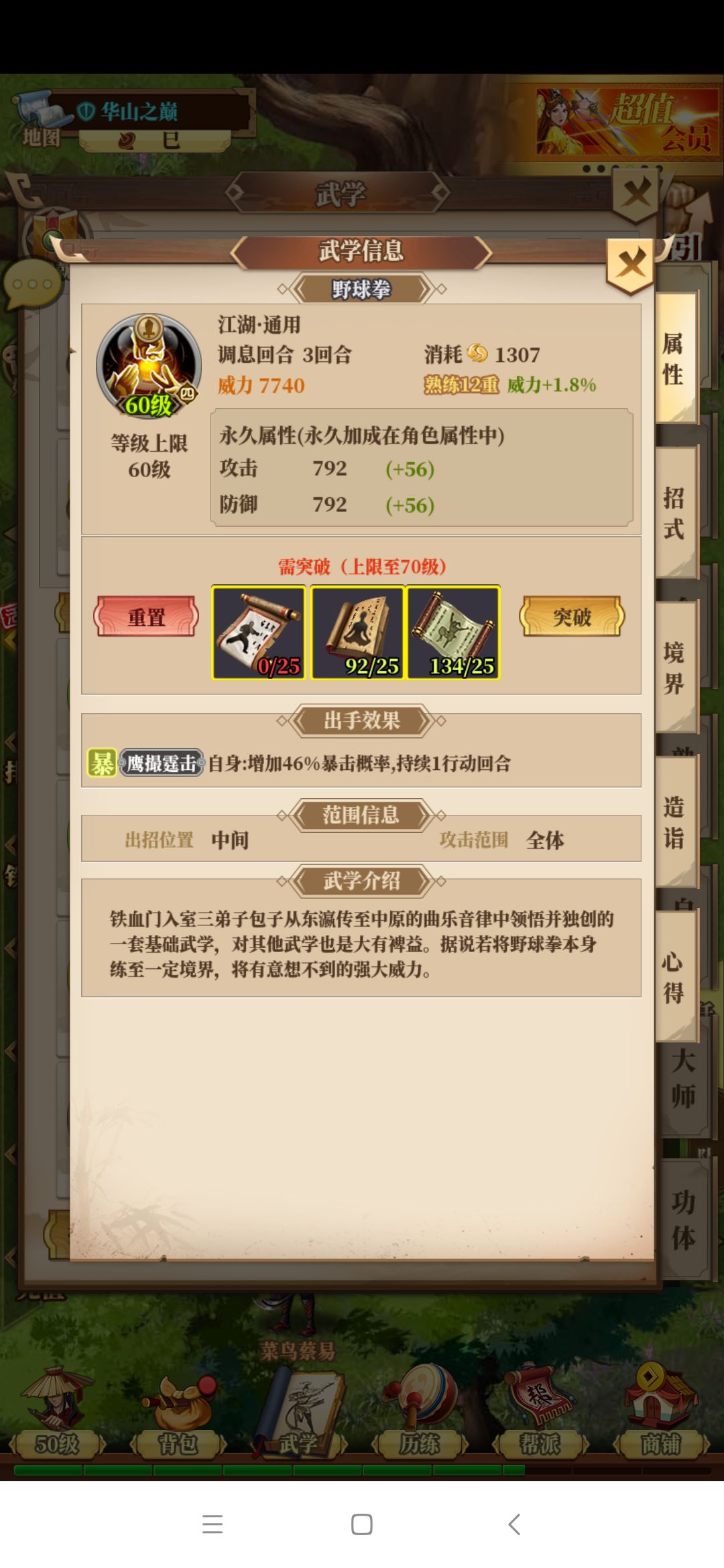 然后是蓝色武学扛把子:门派蓝色武学,门派蓝色武学境界容易提升,威力不俗,在前期缺少武学用的情况下可以用门派蓝色武学过渡