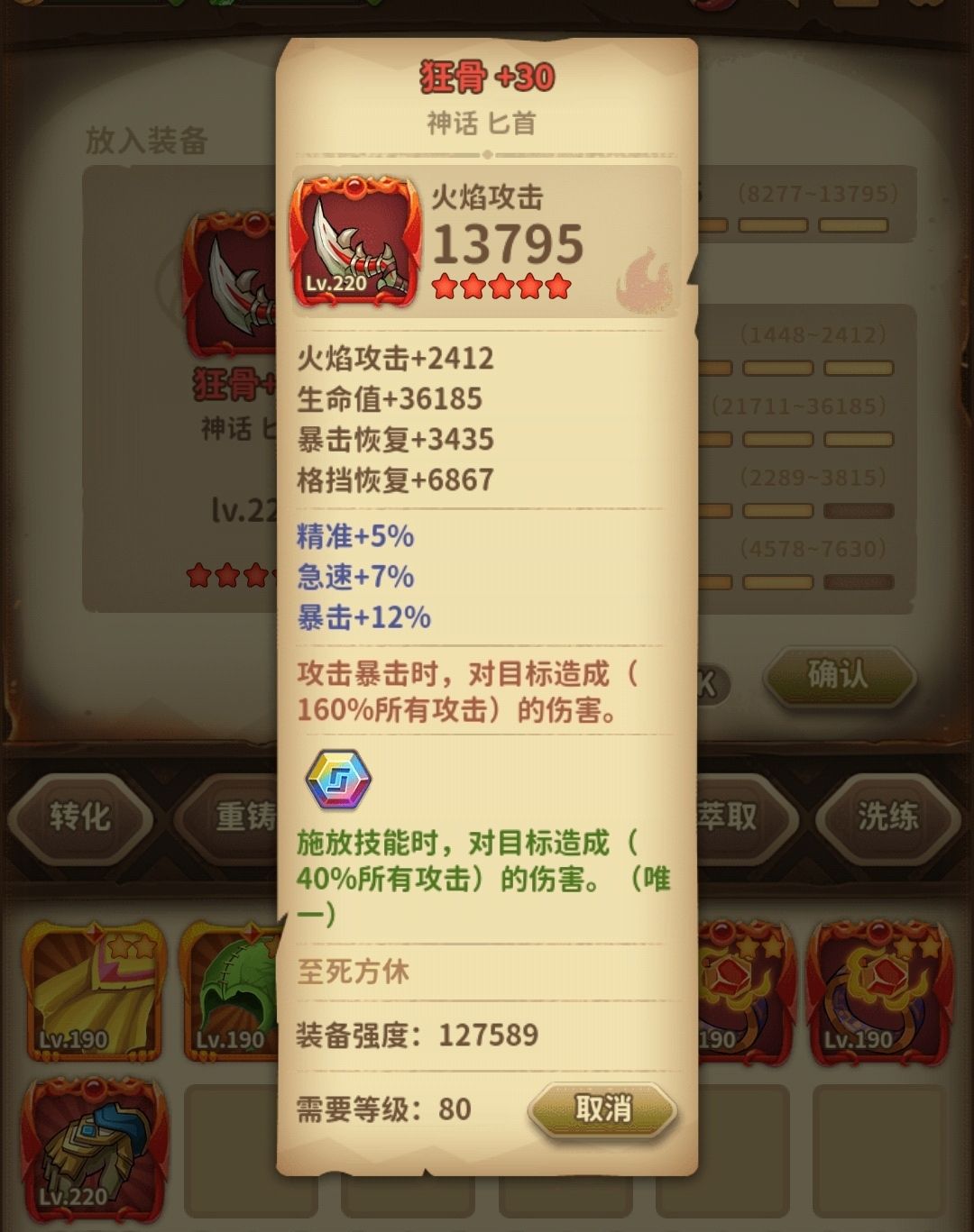 淬炼:8个装备要各不相同,以加攻击,加速度,造成伤害,加暴击优先