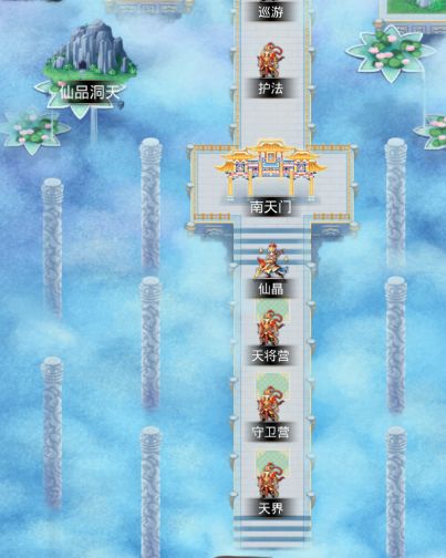 推图到一定程度可以占领仙界的相关职位,南天门、北天门、凌霄宝殿都有,按职位等级不同每天可以领取一定数量的灵石。