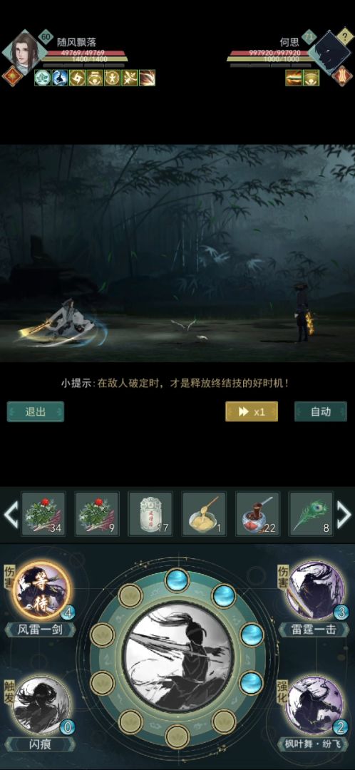 3、28层因为是被攻击有几率增加一息,而且何思武器是无锋,所以用明心雷霆叹息,23层极难度也是用的明心叹息。