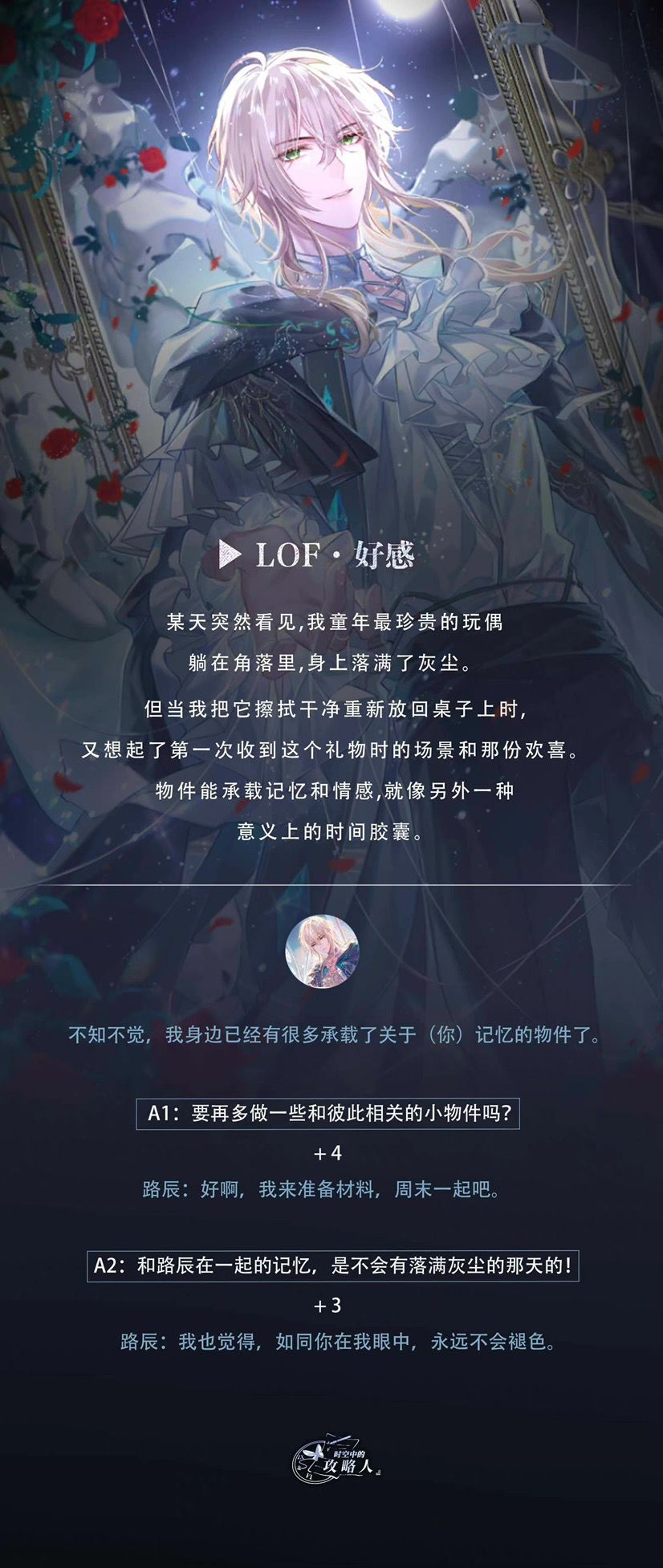 不断去创作的动力,很大程度上也源于与他人分享交流的那份喜悦吧。这次幻想风满满的作品,又会触发他们和小画家怎样的对话呢?拿好感度固然开心,不过看看不同选项的对话,也自有一番乐趣呢 (*^-^*)