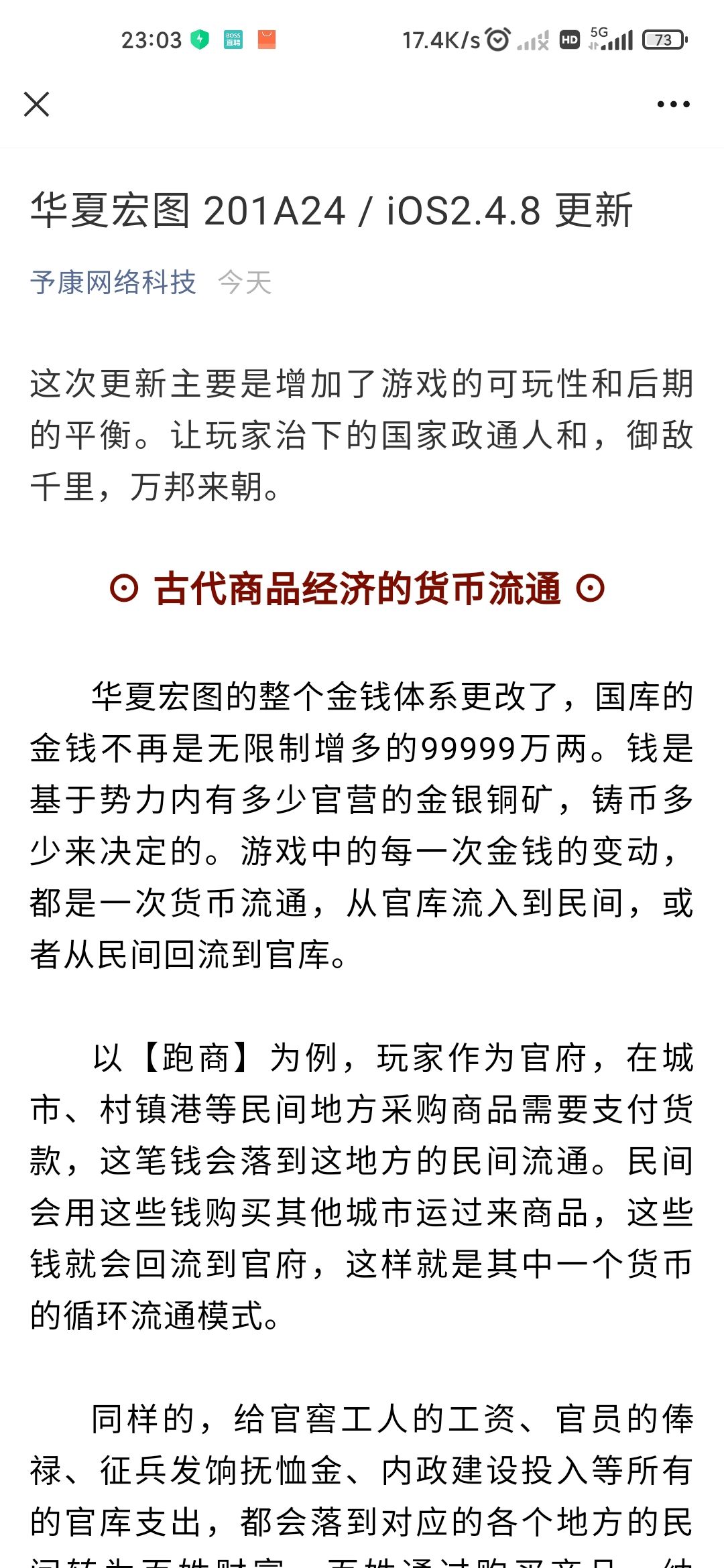 游戏今日更新了,更新主要内容城市扩建事件,跑商优化,经济贸易加强,增加铸钱系统,新造关卡港口的功能。 更新链接
