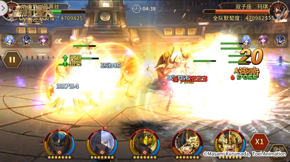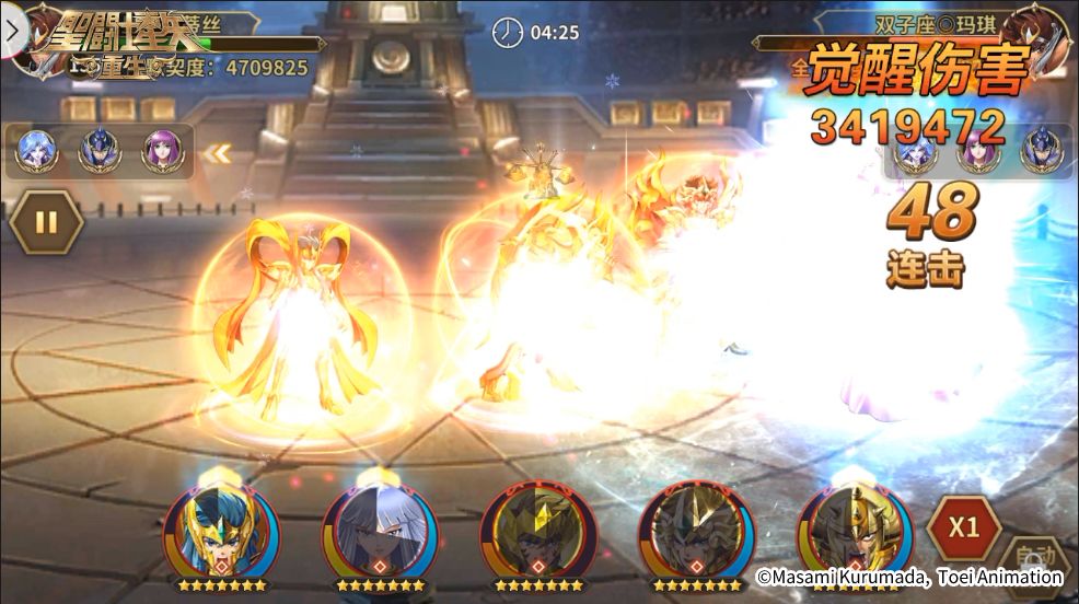 4分32秒,奥丁·艾欧利亚在对面冥衣·撒加的异次元空间,传说圣斗士·星矢的天马冲锋等技能的压力下依旧释放出了“星辰连斩”,快速缩短必杀技的CD时间,为接来下迅速释放必杀和觉醒技创造了条件。