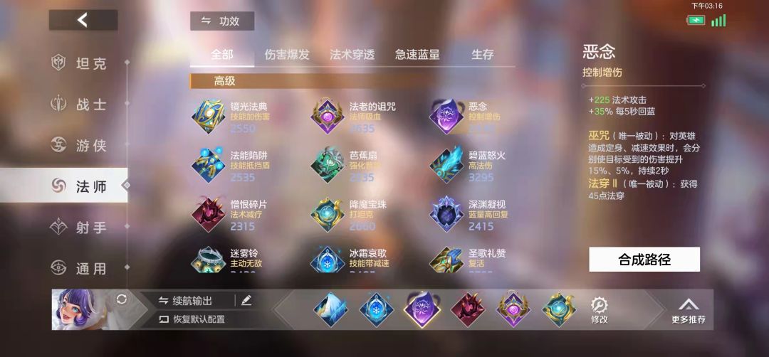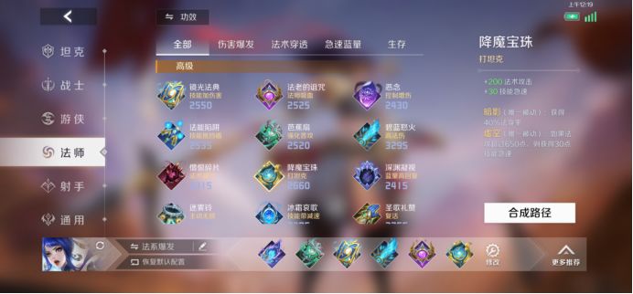 同一个法师可以选择下面不同的发育方向进行出装。