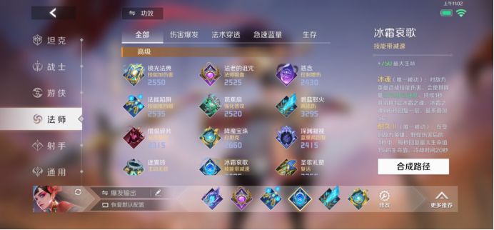 大顺风碾压时,也可替换为【冰霜哀歌】提高减速留人能力,加强自身技能命中和容错率。
