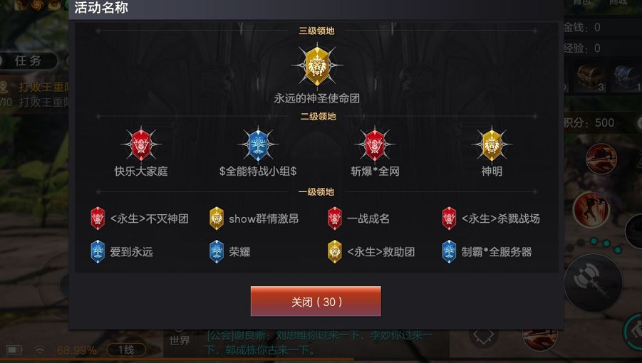 领地战计时结束时刻会弹出结算界面的画面,冒险家们可以看到领地的归属情况