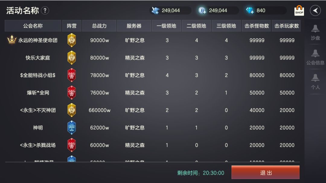 在活动中冒险们随时可以通过小地图旁边的【沙盘】按钮来查看所有公会的领地占领和积分排行情况。