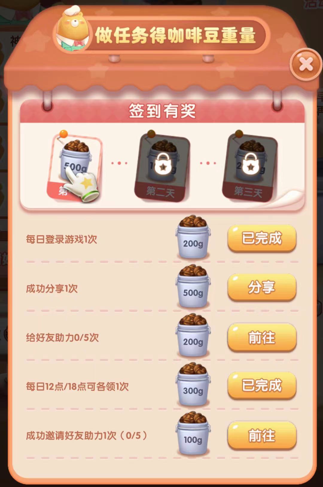 打卡任务清单就能获得咖啡豆