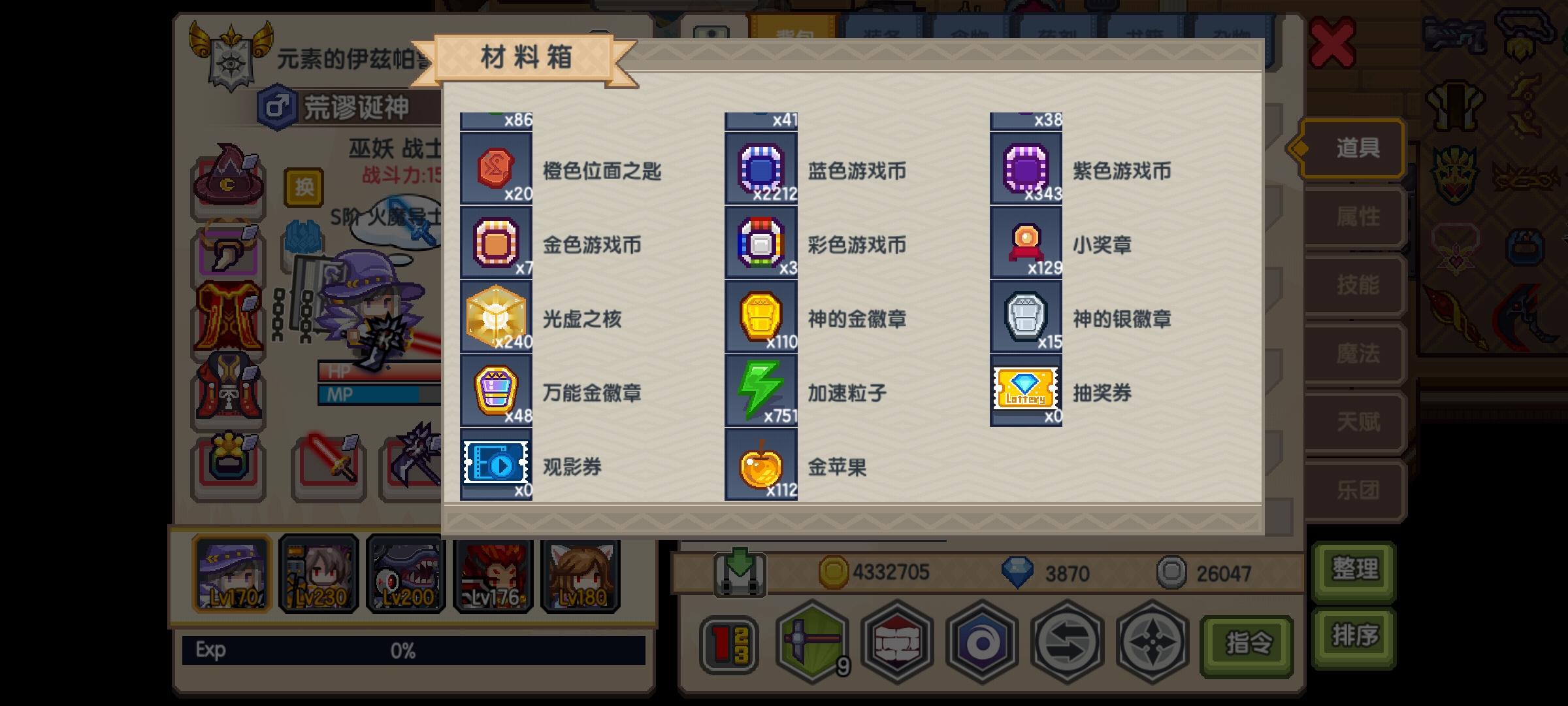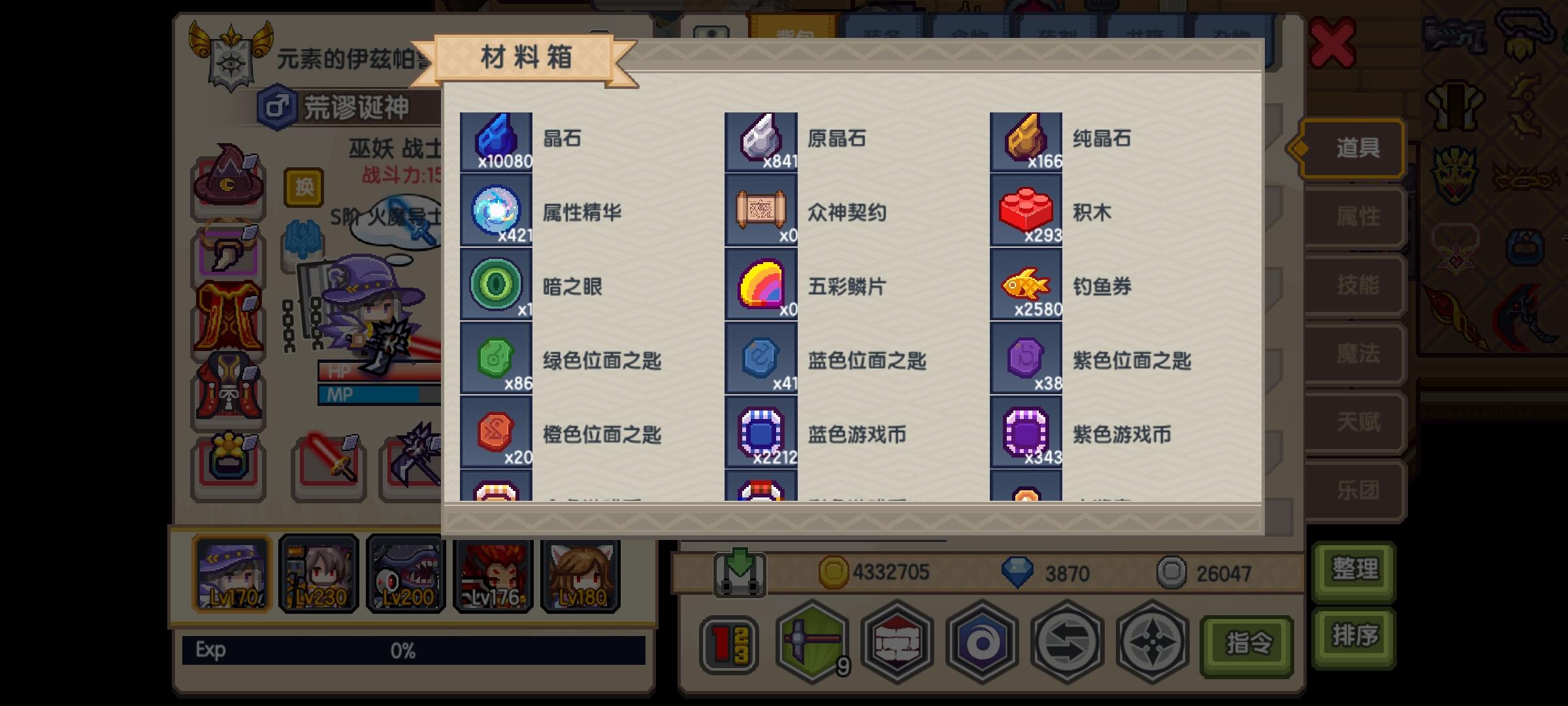 三进阶连100级都没有达到,可见号主懒狗一条,基本上没有花时间玩伊洛纳