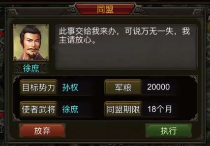 2、接着用3w粮食去同盟,10个月左右即可。虽然时间不长,但可以使得敌对度更低,而后续结盟创造良好条件。