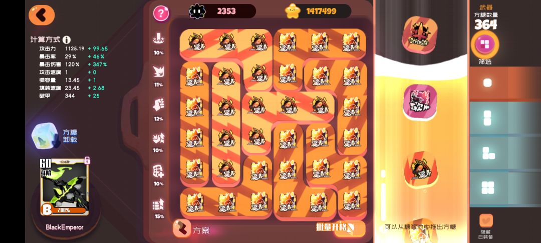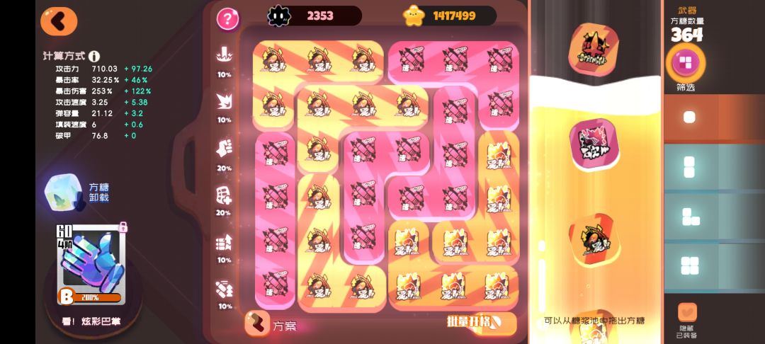 一拳,同样的人物配合武器需要库克才能发挥最大威力,最上面的攻略有,方糖需要三,暴击伤害,俩暴击率,4攻击速度