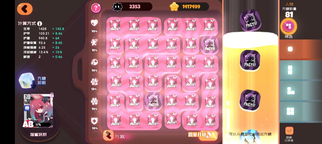 白绒绒:本游戏官方吉祥物,可惜长大了,没那么萌了,加暴击,让你拥有百分百爆击,在没有xh5的时候,可以用它代替,就是方糖需要变更一下,全冷却方糖
